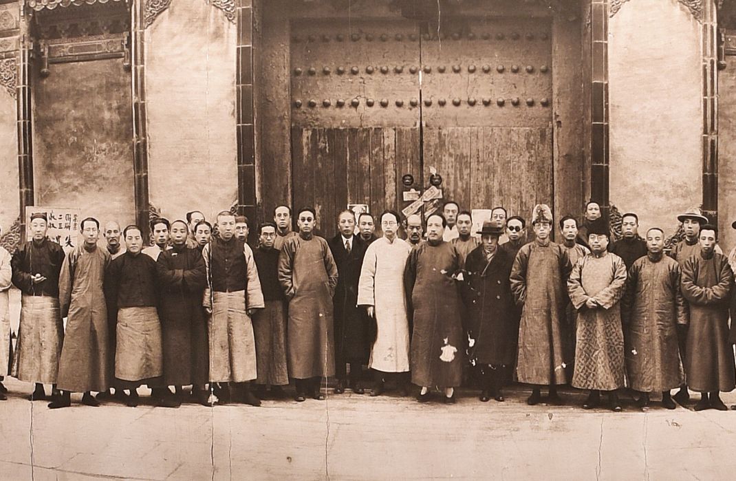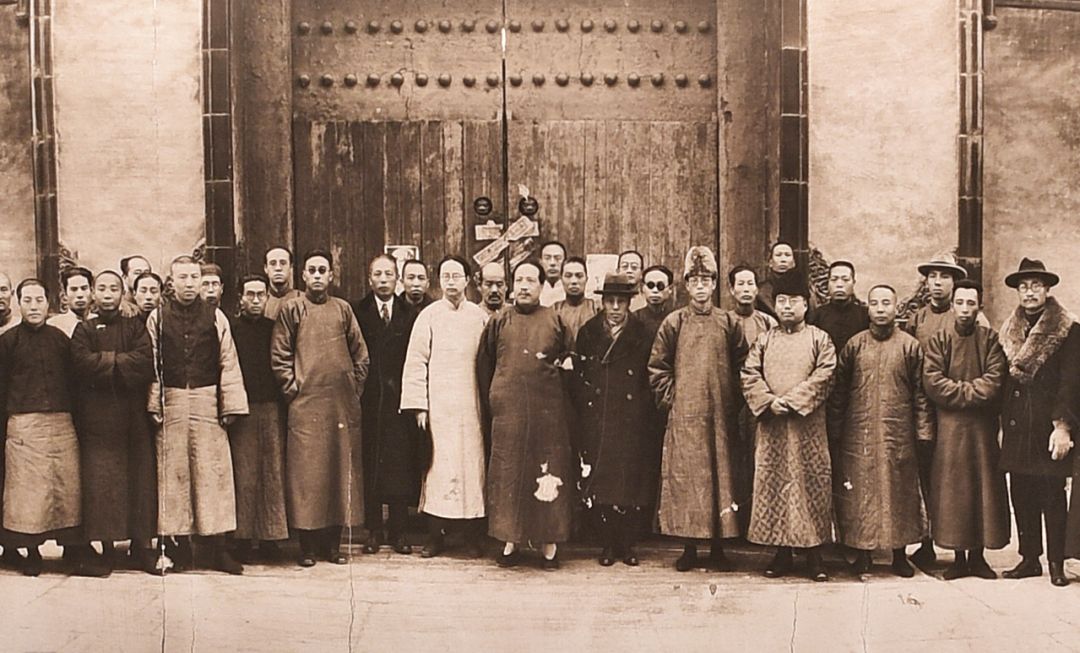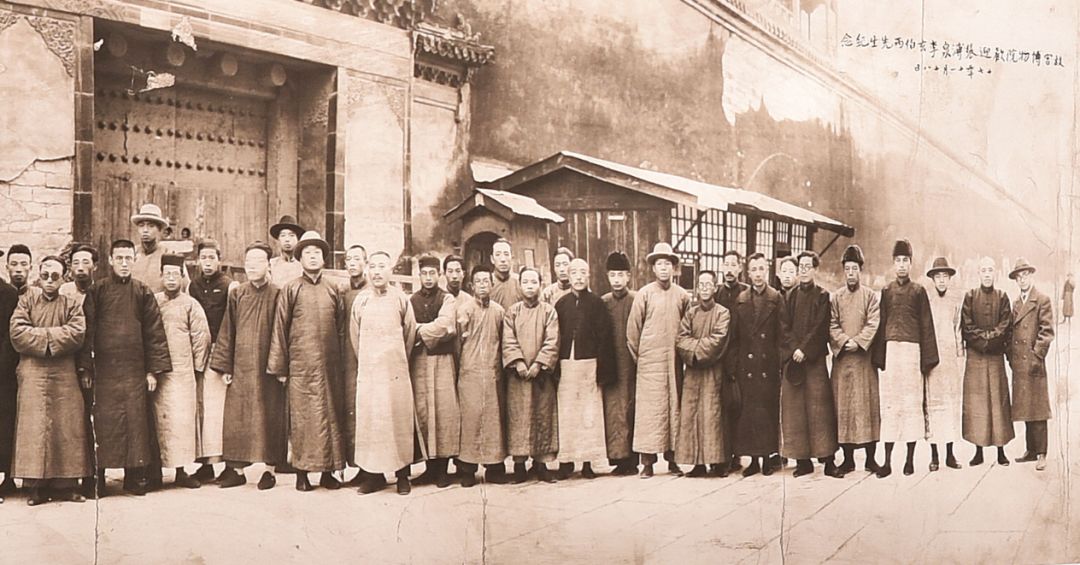 1925年 故宫博物院同仁欢迎易培基到院就职 摄于正阳门火车站 易培基(1880〜1937),字寅村,号鹿山,湖南善化(今长沙)人。伯25年10月始任故宫博物院临时理事兼古物馆馆长,1929年任故宫博物院院长。