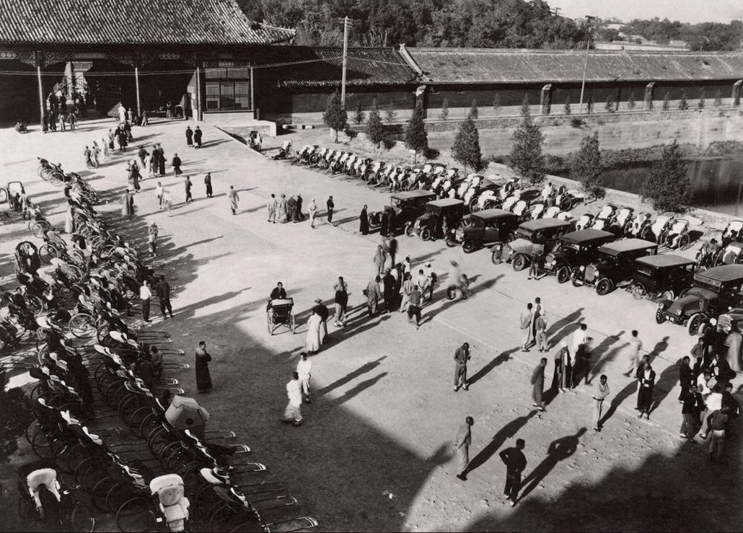 1930年5月20日 故宫博物院举办游园会时北上门前等候游客的人力车及汽车 北上门位于神武门前,于1956年拆除。