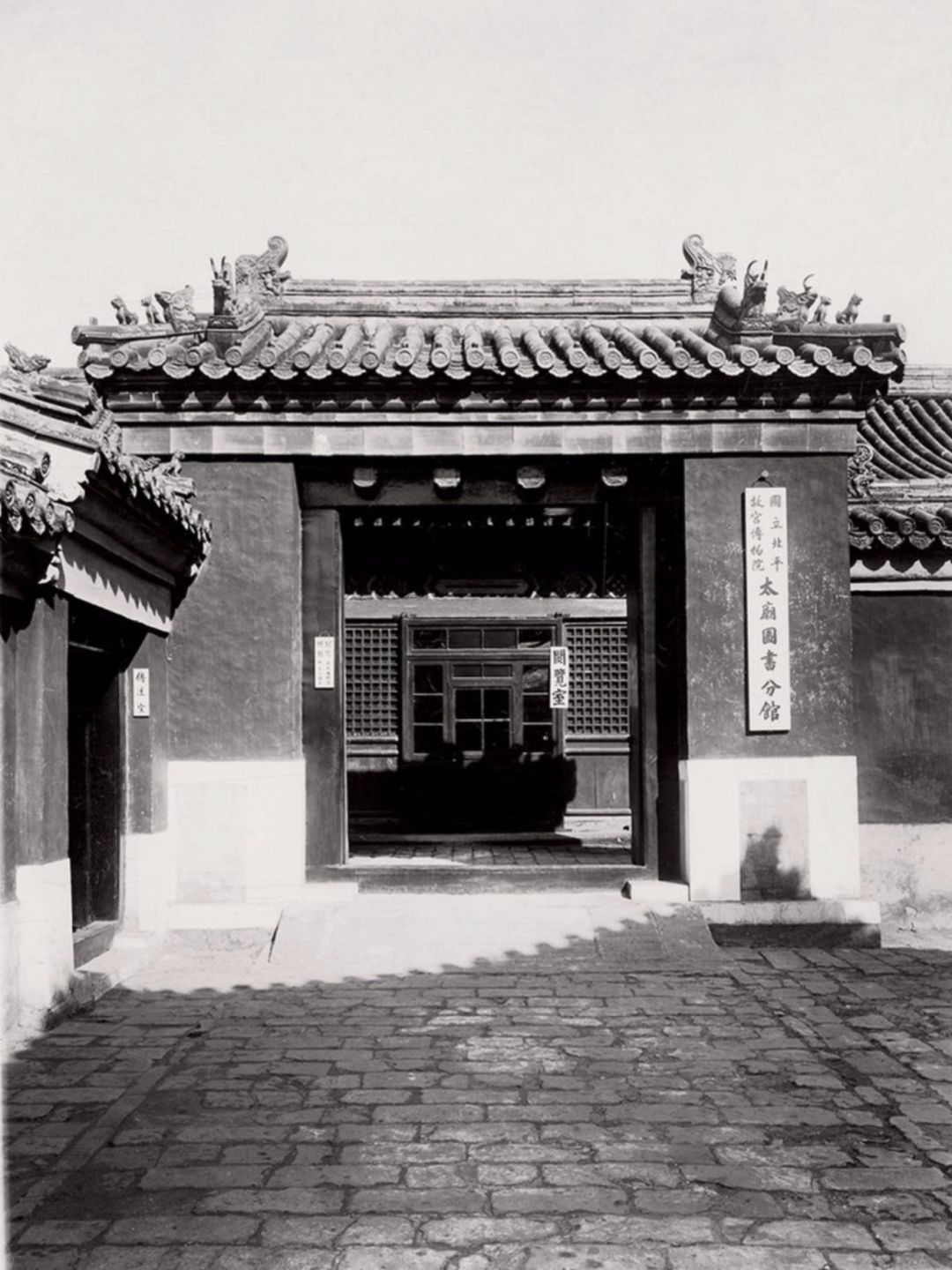20世纪初 太庙图书馆分馆正门 1935年,图书馆为方便读者计,将馆藏复本移至故宫博物院太庙分院,成立分馆。
