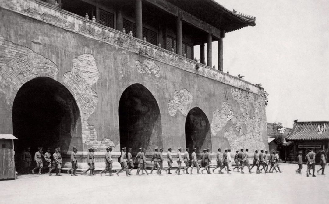 20世纪初 维持治安的军警列队进入神武门