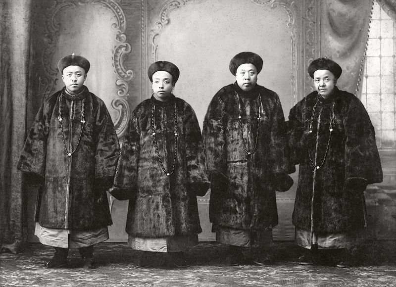 清晚期 四官员合影