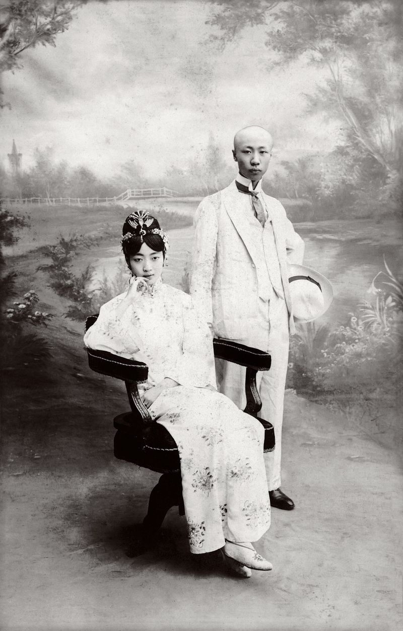 20世纪初 溥仪和婉容在把玩相机
