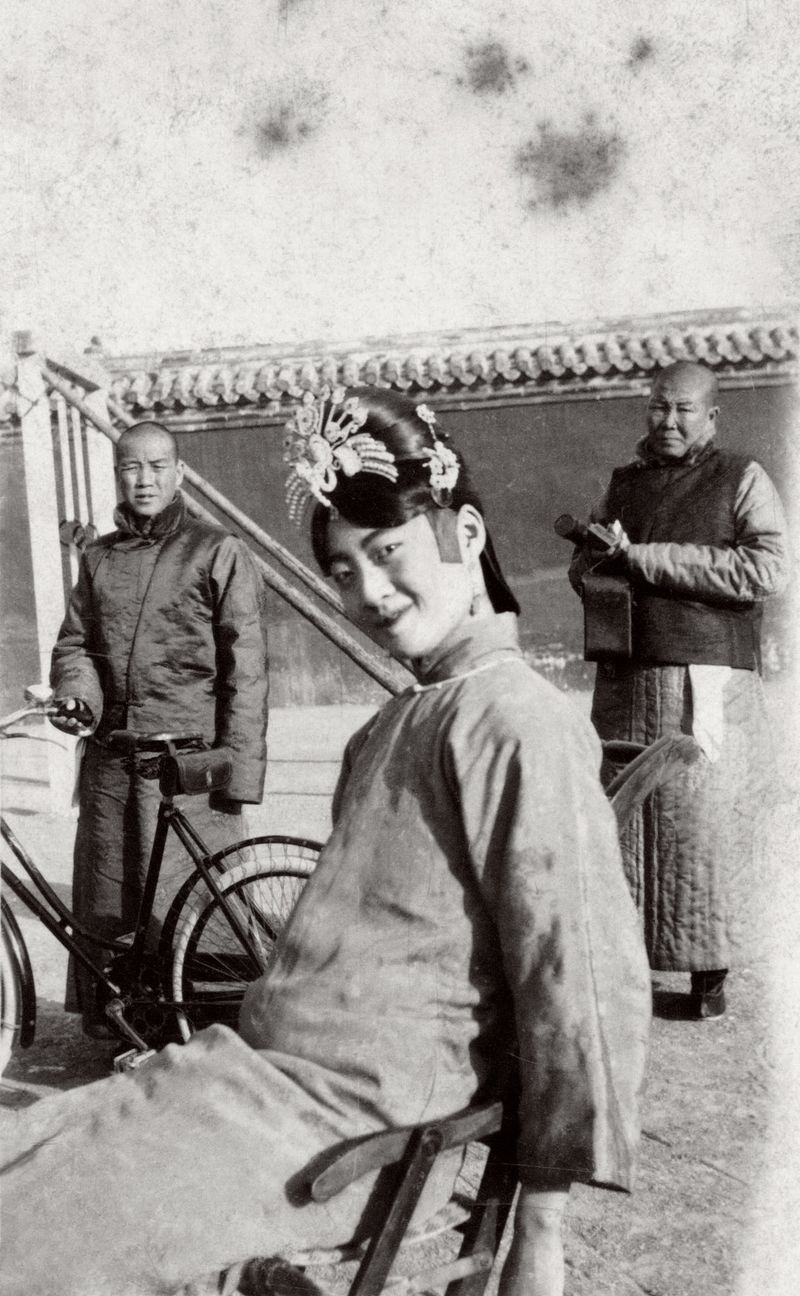 20世纪初 婉容在宫里骑自行车
