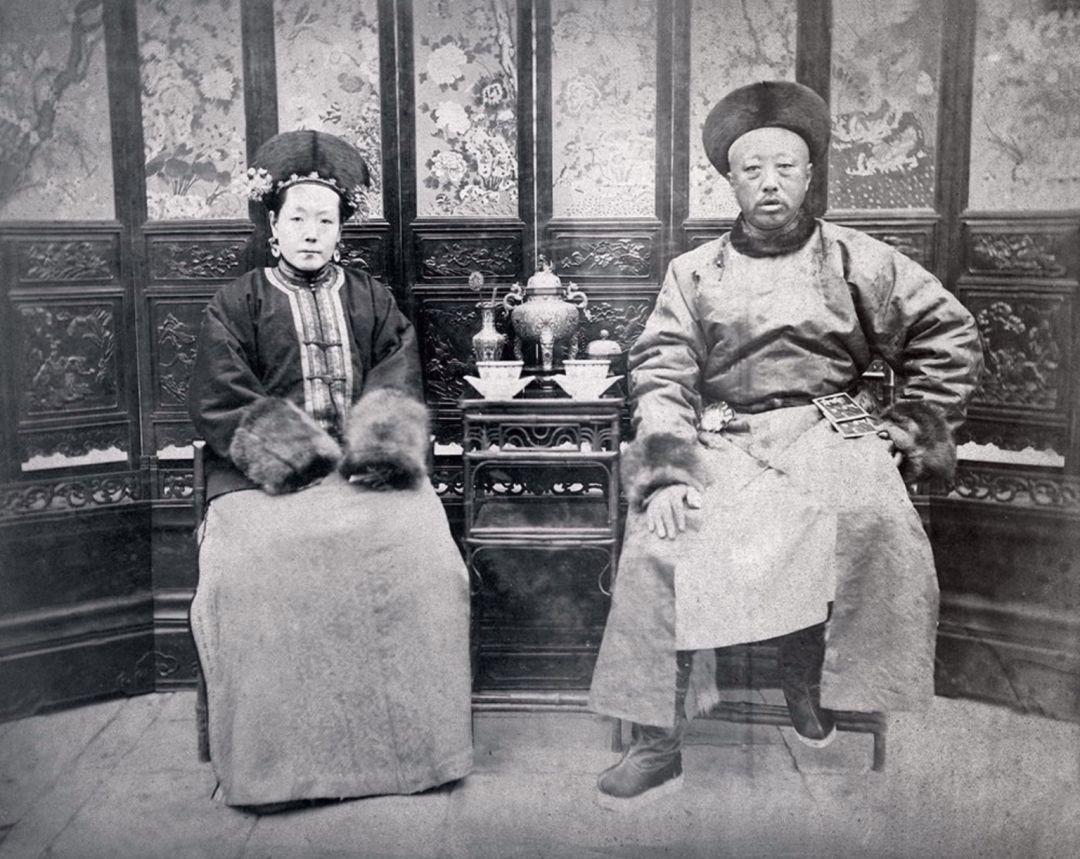 清晚期 奕譞与福晋合影 左坐者为奕譞嫡福晋叶赫那拉氏,为慈禧胞妹,光绪帝生母。