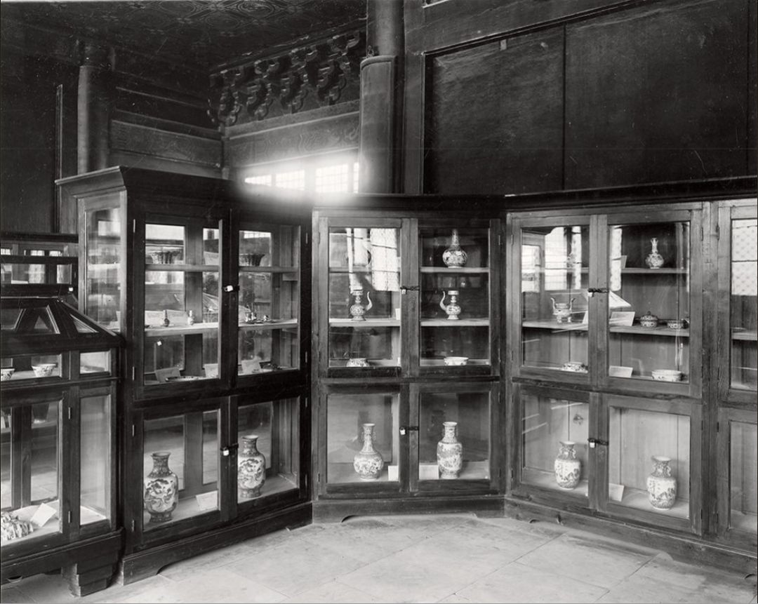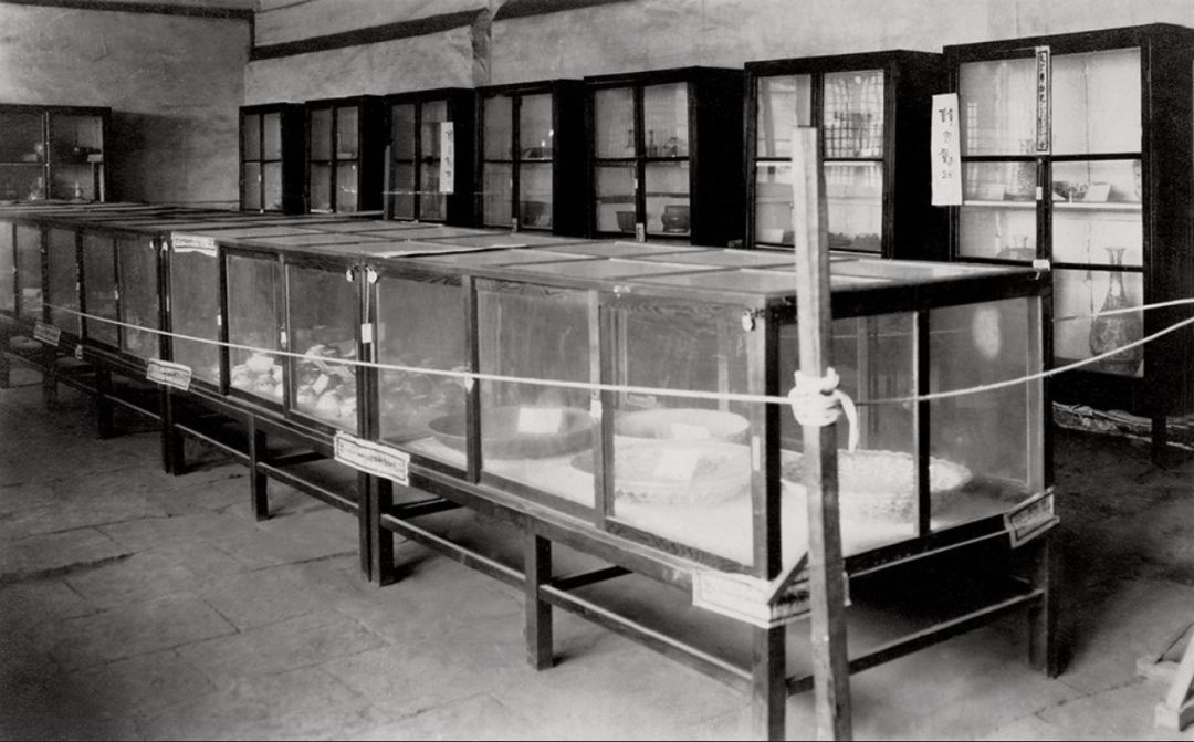 20世纪初 古物馆第五陈列室瓷器陈列 古物馆始设于1925年建院时,负责院内除图书及档案以外文物的分类、编目、保管及展陈事务。