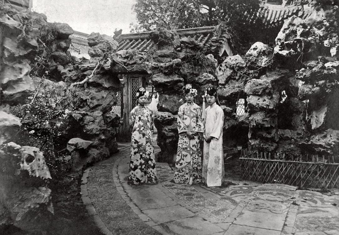 20世纪初 婉容、文绣、唐石霞合影 摄于紫禁城御花园 左起:文绣、婉容、唐石霞。