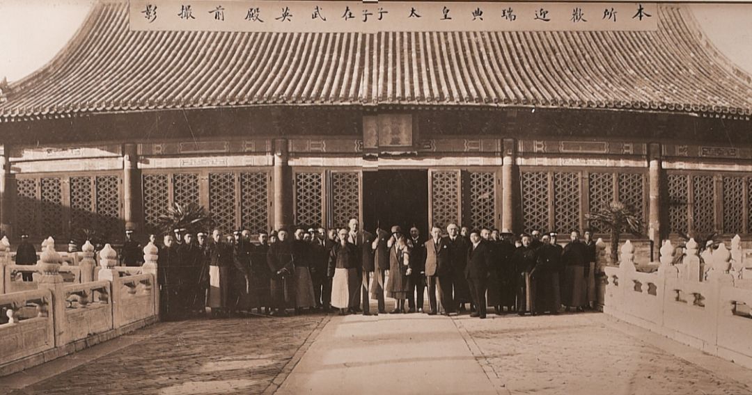 1926年 古物陈列所同仁欢迎瑞典皇太子 摄于武英殿前 位于照片正中者为瑞典皇太子,名为奥斯卡•弗雷德里克•威廉•奥拉夫•古斯塔夫•阿道夫 (1882〜1973),时任瑞典科学研究委员会会长,亦是著名考古学家和中国文物收藏家。