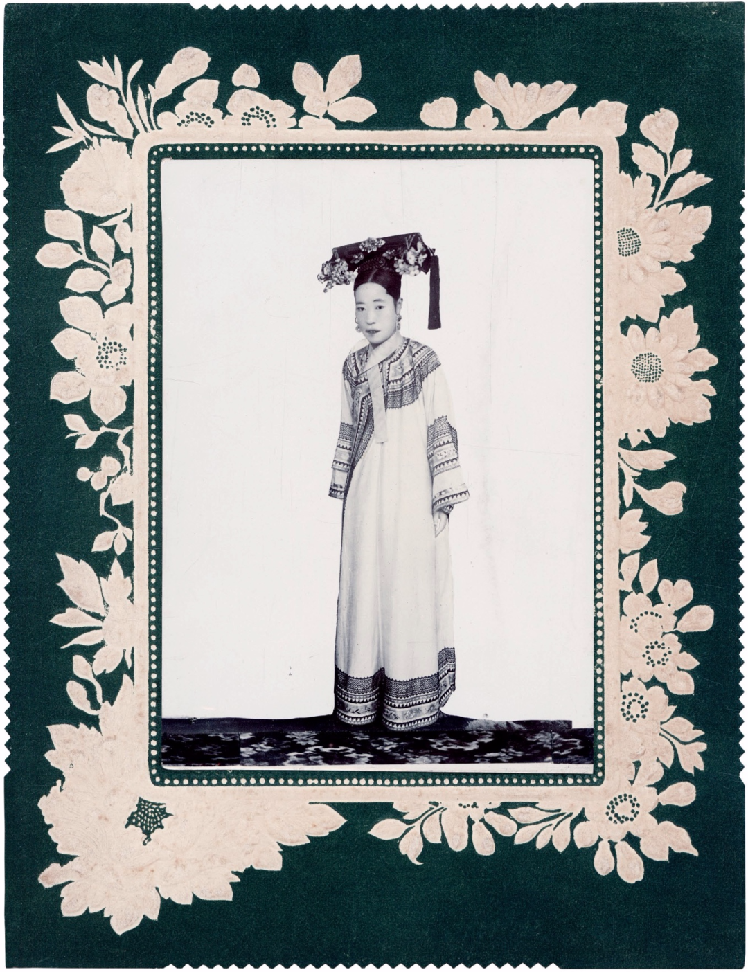 20世纪初 端康太妃与婉容、文绣及溥仪弟妹等人合影 左二起:韫英、韫颖、文绣、韫娱、端康太妃、溥任、韫馨、婉容、韫和、韫娴。照片右下角印有“东华TungHua Photographer PEKING北京东安市场丹桂市场内路西”字样。