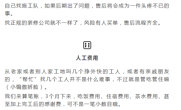 不过,小编还是得说一句,如果在材料、价格和品牌上没有优势,是自己装修还是装修公司装修,区别也就没这么大了。
