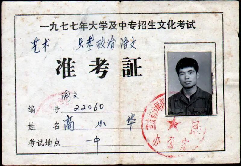 高小华1977年准考证与入学通知书