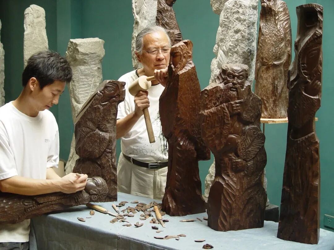 2003年八仙木雕工作照 叶毓山与夏建辉