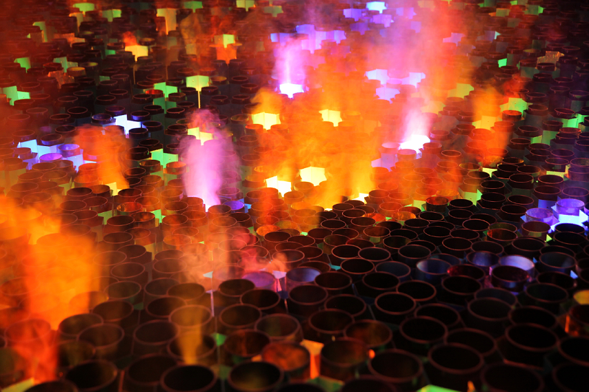 明天雕塑展·郅敏《鸿蒙》局部 陶瓷、金属、雾气、灯光、投影 715cm×715cm×80cm 2020年