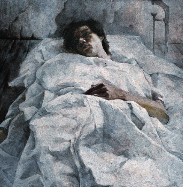 郭伟 《病孩》油画 100x100cm 1988年