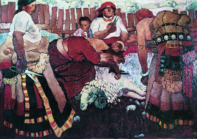 周春芽 《剪羊毛》油画 240x170cm 1981年