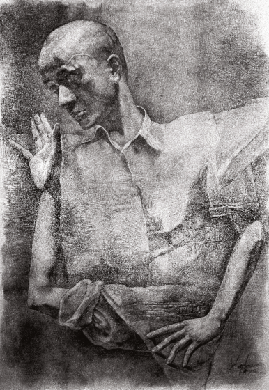 忻海洲 《秃童》纸本素描 75x35cm 1987年