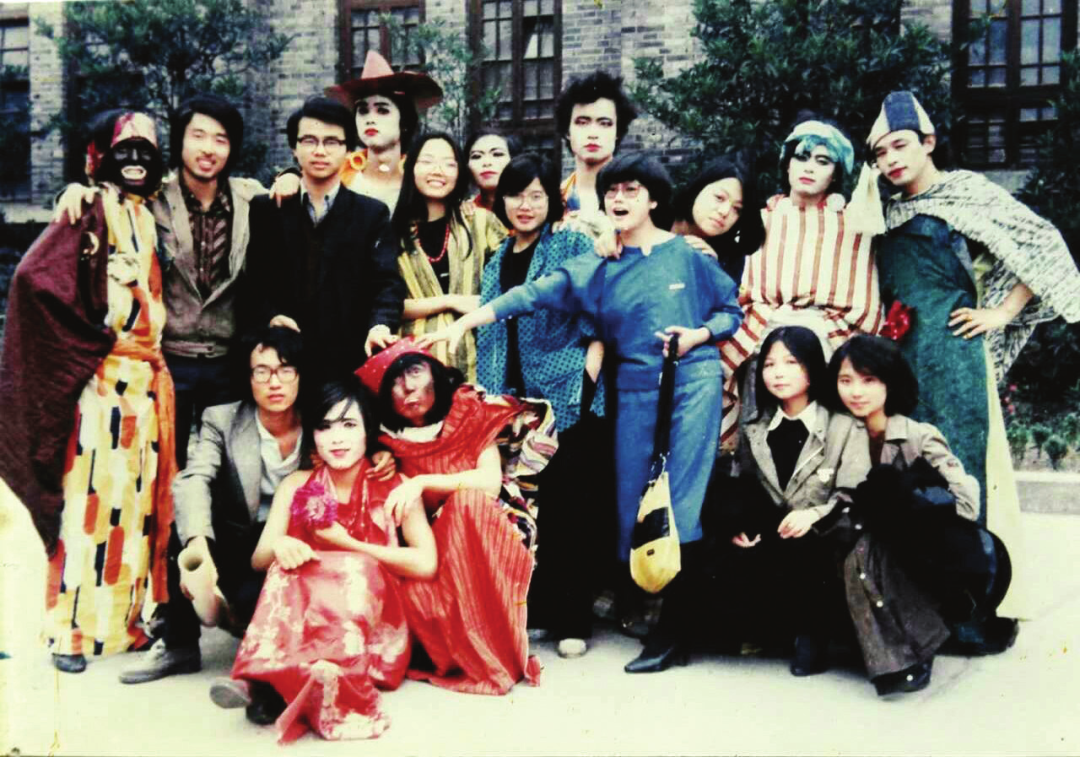 侯宝川与1984 级同学编导的《未来时装表演》演员合影