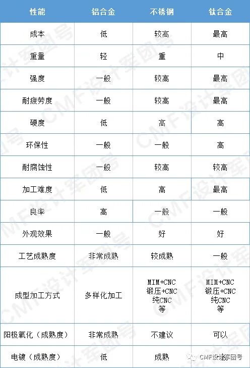 关于钛合金与铝合金、不锈钢的材质性能比较,大家可以看一下笔者总结的,如下表: