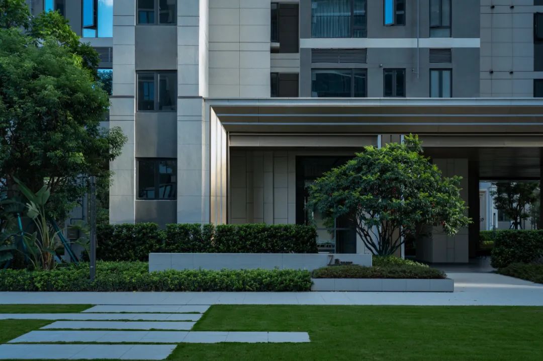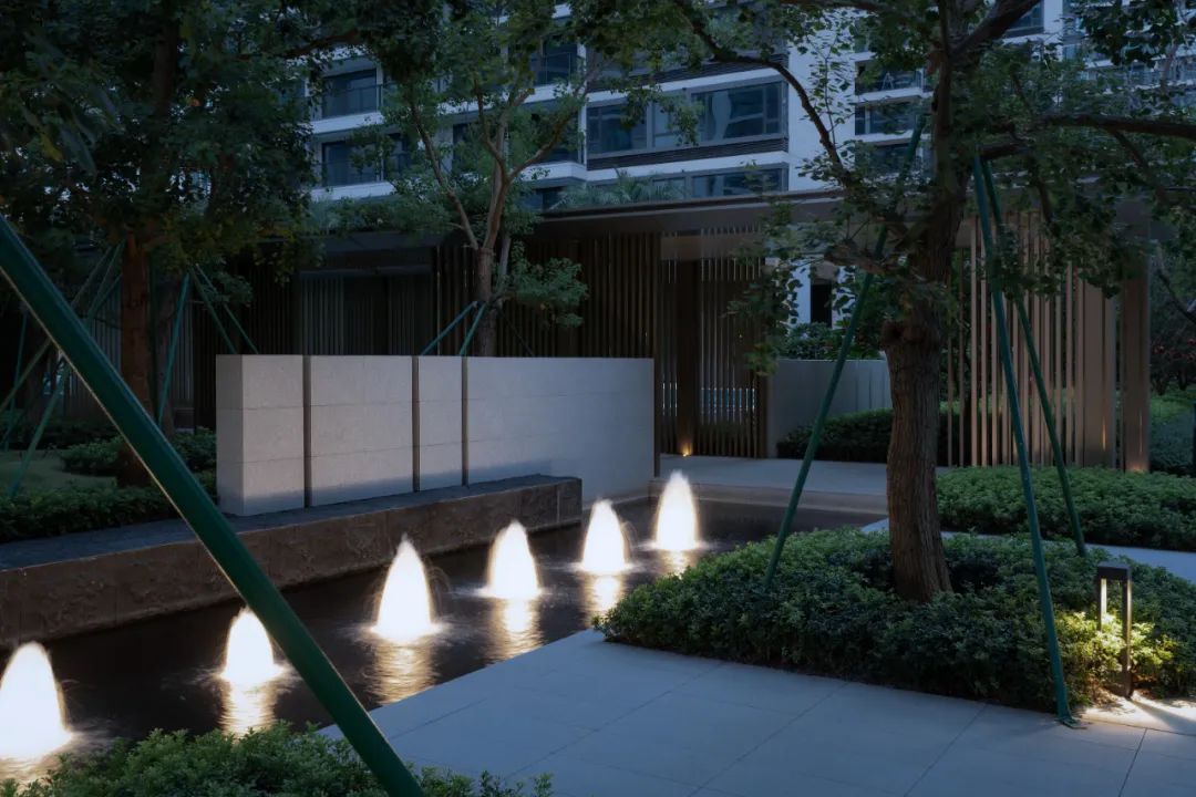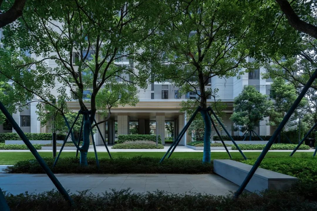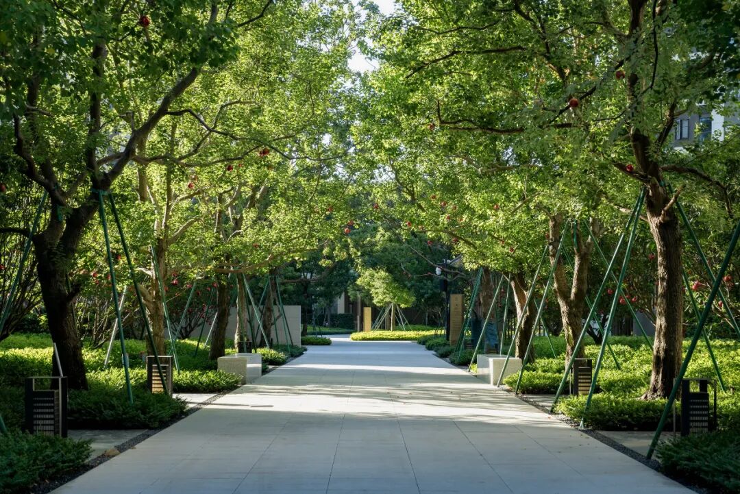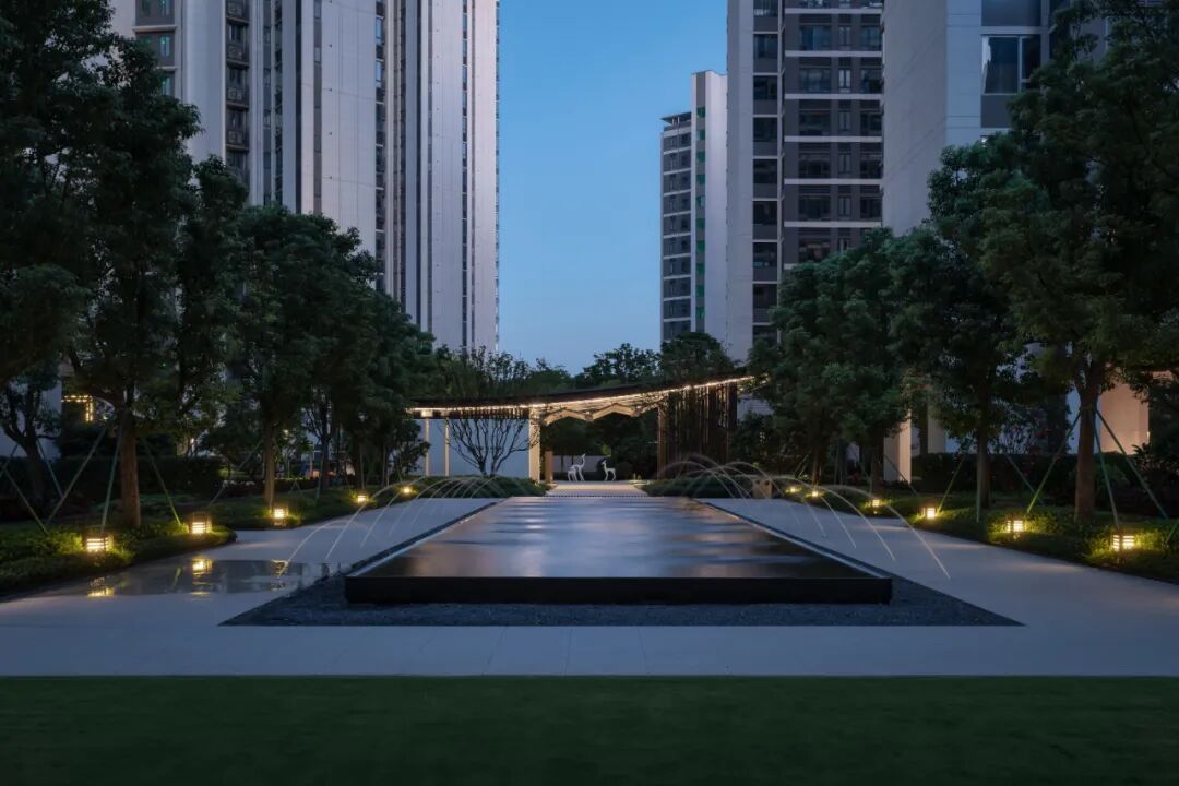 与自然共生的“森居”理念贯穿了园区,归家即是一场宁静的心灵之旅。进入园区的当下,便可拂去一天的疲惫。在设计中我们希望水与林都自然的存在着,回归生活最本质的感受,人与景的互相熏陶,融入行为印记里。在乌桕密林与漂浮着露珠的观赏草掩映下,隐隐透着安静惬意的假日氛围。阳光在自然的山林里穿梭,透过挺拔的乔木,照下斑驳的树影,有光的日子里,如梦幻般的美好。