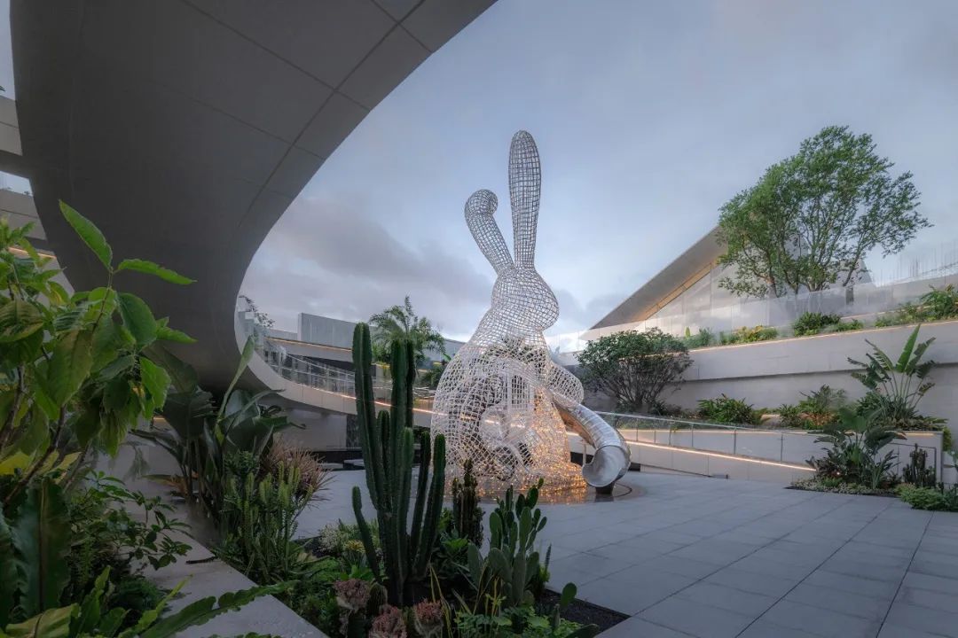 向下延伸的弧形廊桥连接梦境世界的兔子洞,通往下沉的绿谷花园。旋转的弧桥、层级的花园绿植、无界跌水石瀑、水中跳动的石块,梦境围绕着神秘的时光兔徐徐展开,在开始轻轻的向你讲述这个洞里的故事。这个自然的区域不像寻常所见那样出现在开敞的空地上,而是藏匿于一片杂木林之中,这是每个孩子梦境中的神秘森林城堡,红色的蘑菇、呆萌的兔子、先知树的空间栈道、神奇的潘多拉魔盒,贯穿IP场景化打造一处融景、融情、融境的多维度“爱丽丝奇幻之旅”。“这是一个感知人文、亲近自然、寓教于乐的探索乐园,旨在让孩子们于嬉戏中探索大自然的美好,在玩乐中探寻生命的起源,孩子们探索森林长期以来形成的自然环境,沉浸在森林秘境中,可以从新的角度去发现更多奇妙之处。