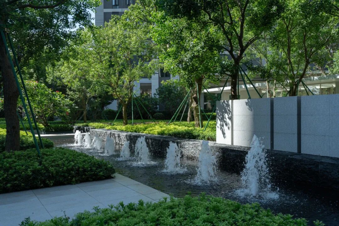 优雅与温暖的景观质感,只为每次归家的你都能够感受这沁人心脾的绿意和潺潺水流的闲适。我们希望在空间的不同角落,结合不同的主题功能提供放松疗愈的林下会客厅,可以聚会谈天、可以会茶友、可以欢声娱乐、亦可以挥汗如雨的健身,让人充分跟自然接触;并适当的融入一些岭南文化的秀逸与雅致,在地文化与自然元素的融合使场地焕新而不陌生,相映成趣。适当模糊的留空,可以让场地有自发生长的空间,为绿地规划了多种模式、让不同人群、不同季节性活动,带来不可预知的惊喜。
