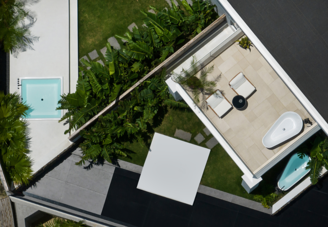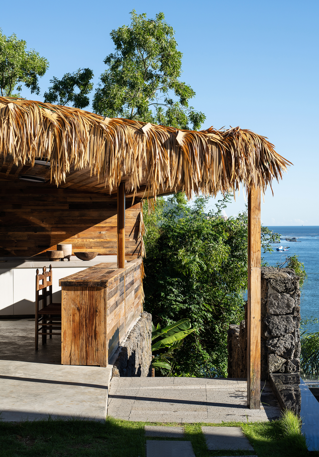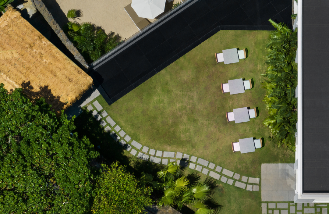 度假主义的精神感知,是用设计为体验者带来更多场域与情绪的激发。顺应于周围环境,设计师保持了建筑原有的形态,两层高的建筑掩映在棕榈树下,房子如同“种”在自然之中。