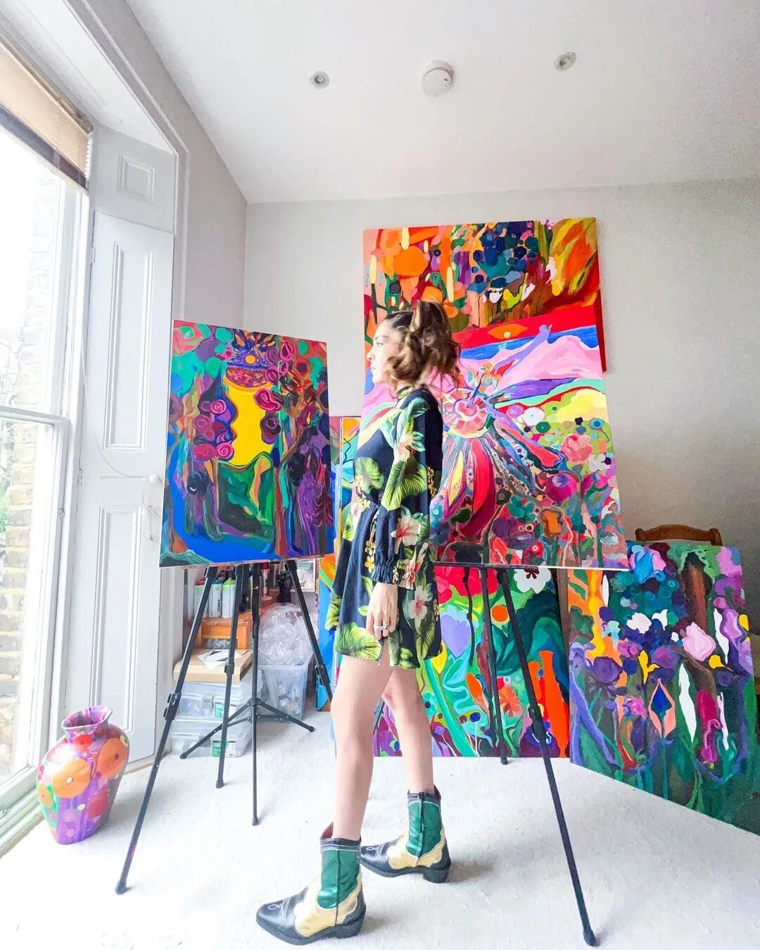 她说:“我认为我的作品反映了自己如何看待和解释世界,用大胆的色彩表达情感,将真实和想象的有机结构相互融合。这创造了梦幻般的世界的印象,自然与幻想的生动爆炸。”