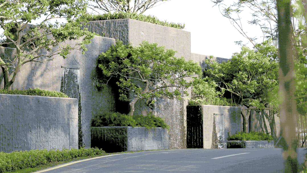 气势磅礴的60米面宽门楼,搭配叠水涌泉,一刚一柔,在形式与美学之间,营造与自然交融相生的生活意境,赋予人们细腻而生动的视觉体验。