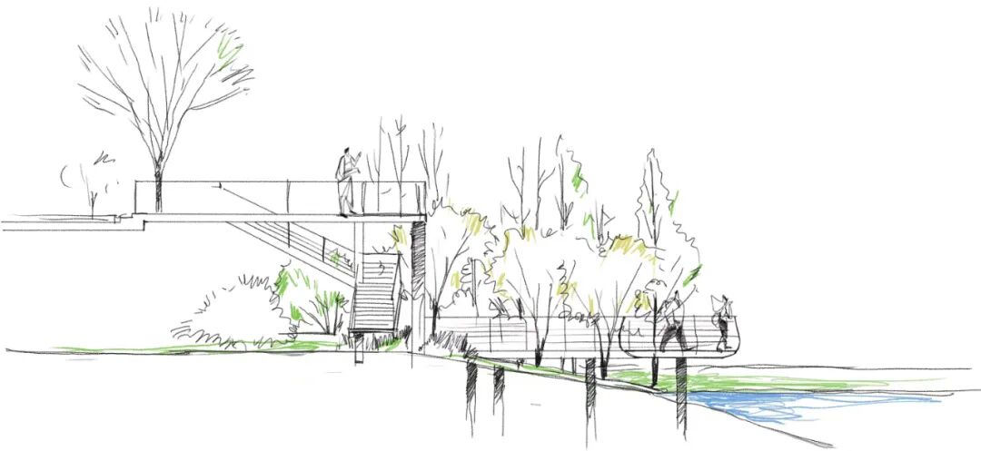 ▲巧用高差,打造融入自然的观景台,为居者观景、漫步、游憩提供更舒适的户外体验