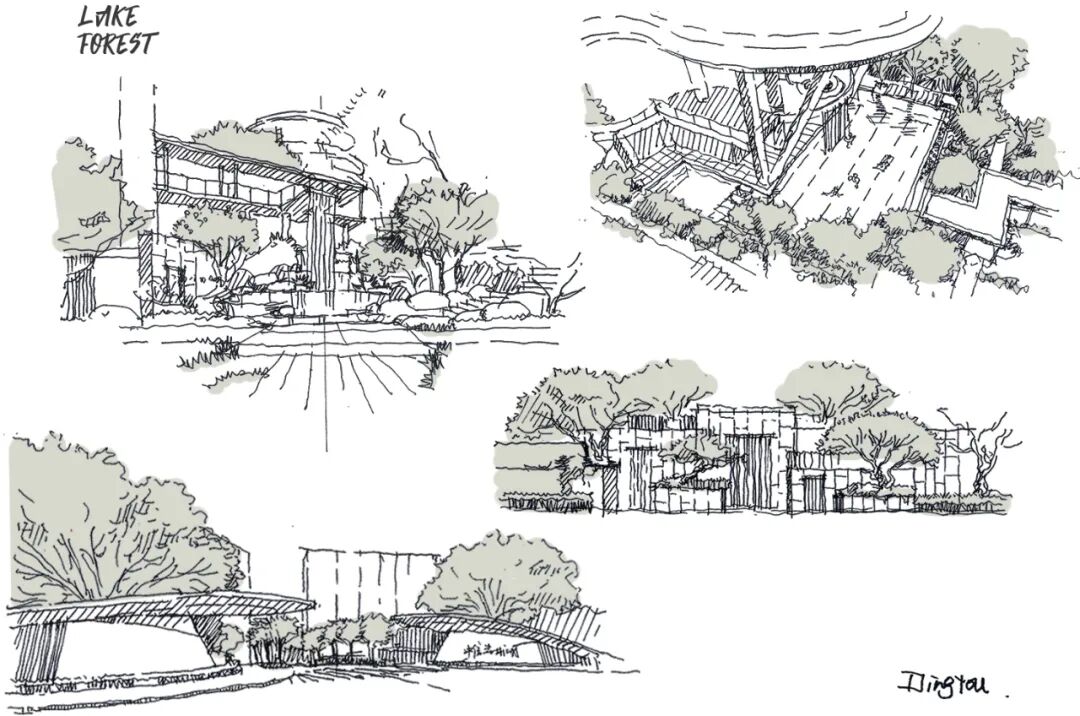 漂浮观景平台,以艺术语境构筑浪漫的水中休闲区,与远山、建筑、园景相互映衬,相互交融,丰富而充满变化的景致营造出多元化的趣味体验。