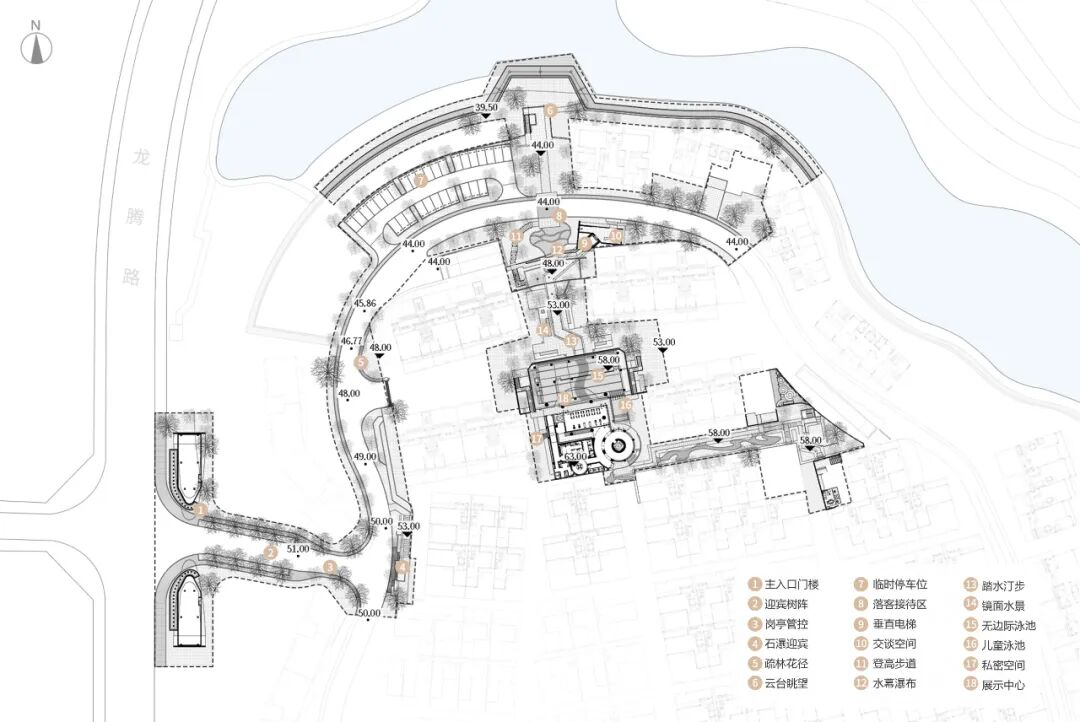 延承千年的自然栖居,设计将建筑、院落、廊桥、园路等组合出独特的空间段落。以“现代科技”概念承载物与自然的和鸣,沉浸式的空间体验,独特的艺术美学,营造一座都市中静谧隐奢的山水胜地。