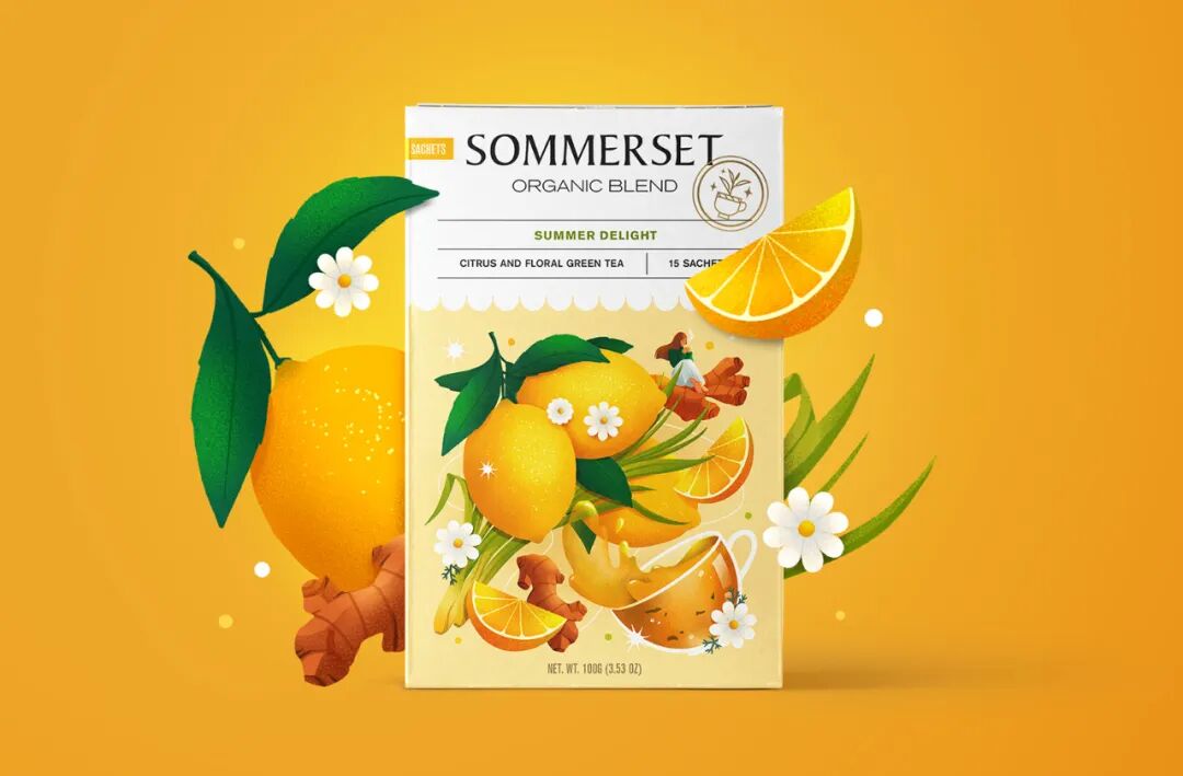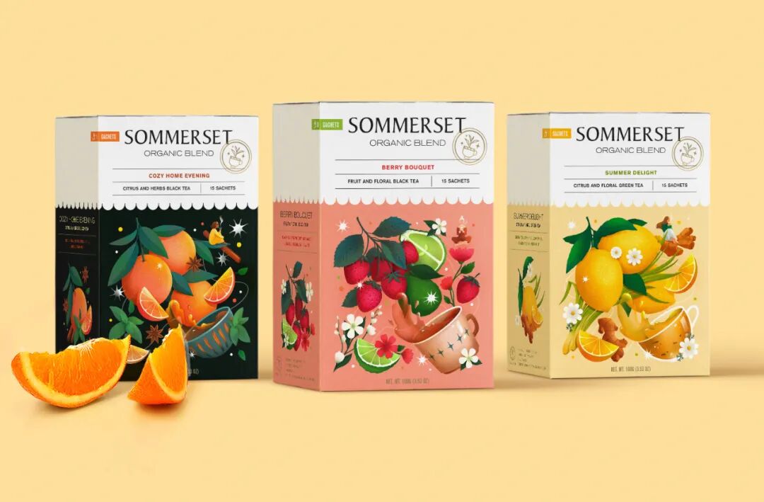 Sommerset是一款茶叶产品,是不同的混合茶,目前有三种不同的混合茶上市,其项目内容为Sommerset打造混合茶系列包装设计,其概念主要传达饮茶的氛围以及心情。三种不同的混合茶所传达的概念为:浆果花束,舒适的家庭傍晚和夏天的喜悦。