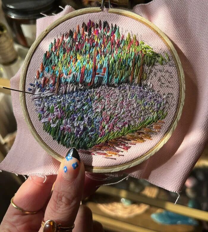 艺术家让这些美丽的场景,在小小的绣绷上轮番“上演”,生动而绚烂,令人陶醉。还有人看完她的刺绣美景忍不住赞美:“她仿佛绣出了景色的风起云涌之感,美不胜收”。从爱好到成为事业,这位艺术家用自己的故事告诉我们,如果有梦想,就付诸行动,勇敢追梦,全情投入,便一定能收获属于你的风景。接下来,我们就一起欣赏这位艺术家,创作的精美刺绣艺术作品吧。
