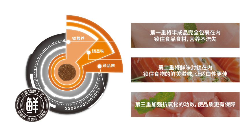 如何将新鲜的食材生产成新鲜的宠粮,比乐一直在持续不断的研究这一课题。针对如何有效解决食品的氧化问题,这次比乐开创性地在喷涂生产工艺中研发了让产品更具有抗氧化的关键技术,业内首创三重锁鲜工艺,重新定义“鲜”粮!