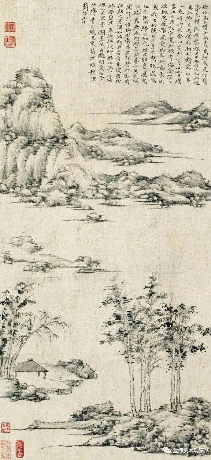 元人幽亭秀木自在化工之外一种灵气。惟其品若天际冥鸿,故出笔便如哀弦急管,声情并集,非大地欢乐场中可得而拟议者也。