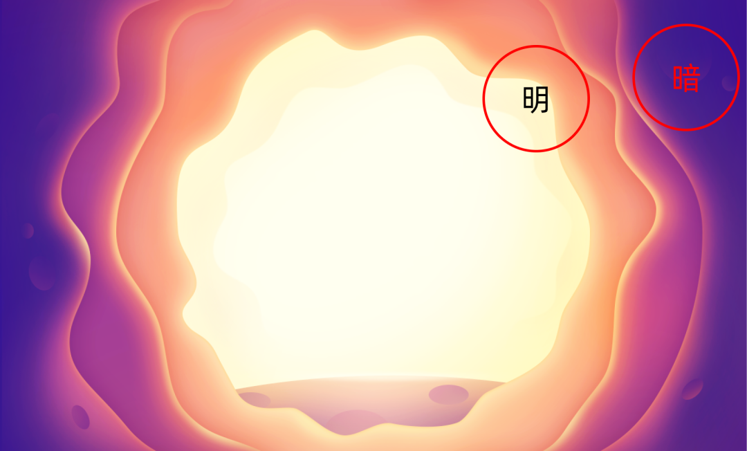 除了虚实、大小之外,明暗也能对比出前后关系,从而营造空间感。
