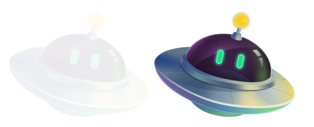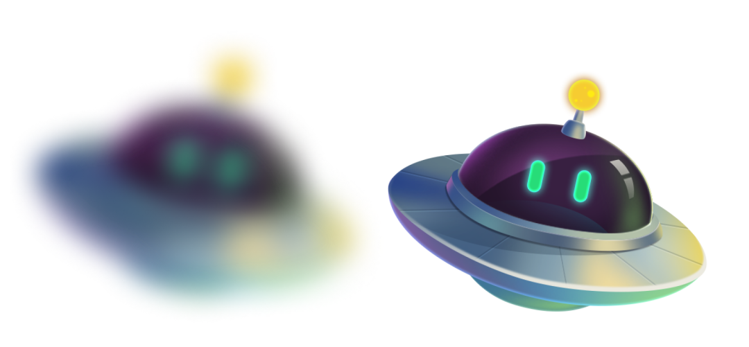 两相比较,颜色更实的飞碟,会处于颜色较浅的飞碟前面。 3.大小