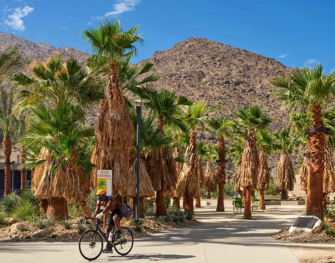 位于加利福尼亚州的棕榈泉市被圣哈辛托山包围,是一座沙漠旁的绿洲。虽然干旱少雨,但全年阳光明媚,山谷内生长着茂密的、由泉水滋润的棕榈树,城市也因此得名。