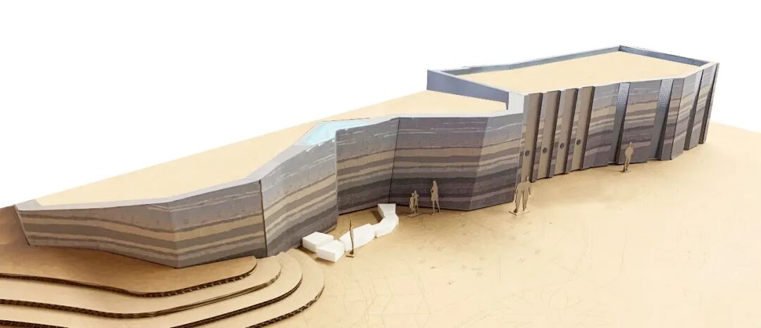 露岩的立面色彩曾经过多次“沉积”试验,并以1:1 的比例打样,力求在设计过程中就把场景的体验感做到最佳状态,让景观与山脉的空间质感统一,最大程度还原自然纹理。