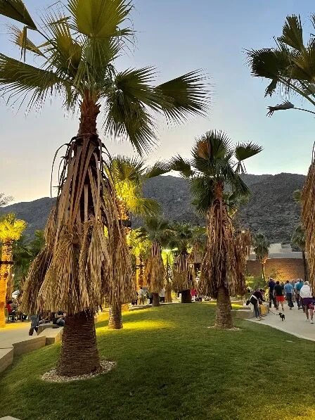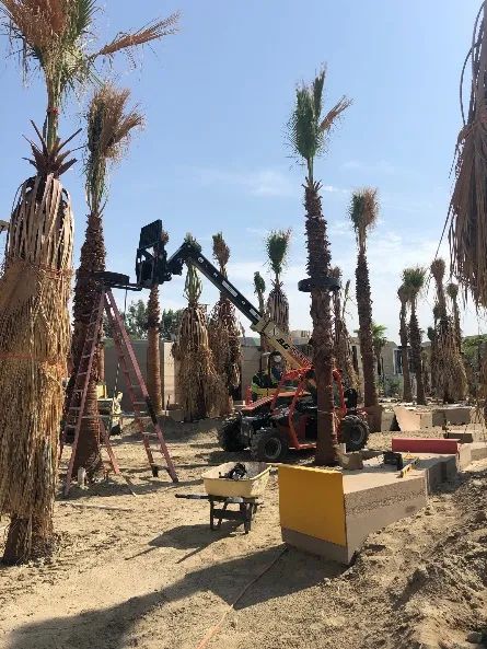 棕榈林(The Palm Grove)为超过120华氏度的高温夏季带来些许舒适与清凉。华盛顿棕榈是加州唯一的原住民棕榈,参差的高度与繁茂的树叶,是狂野沙漠景观的投射。