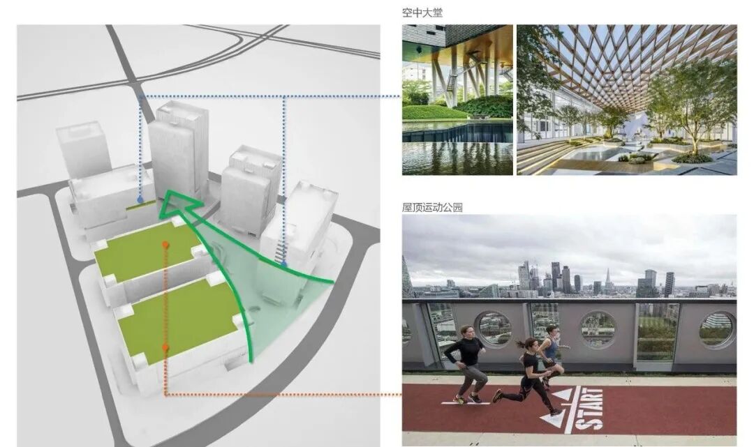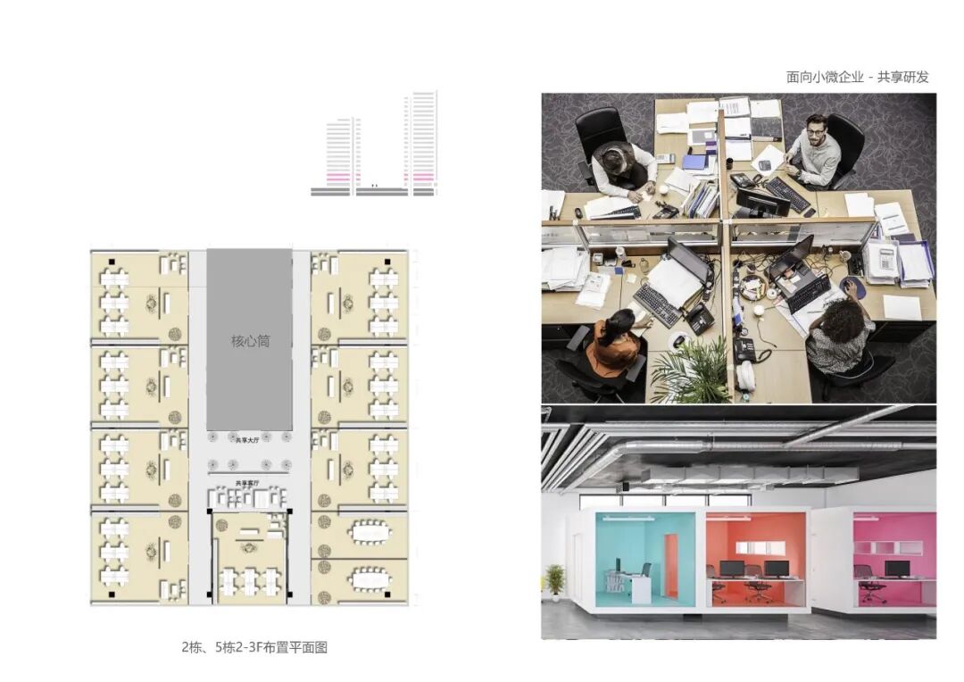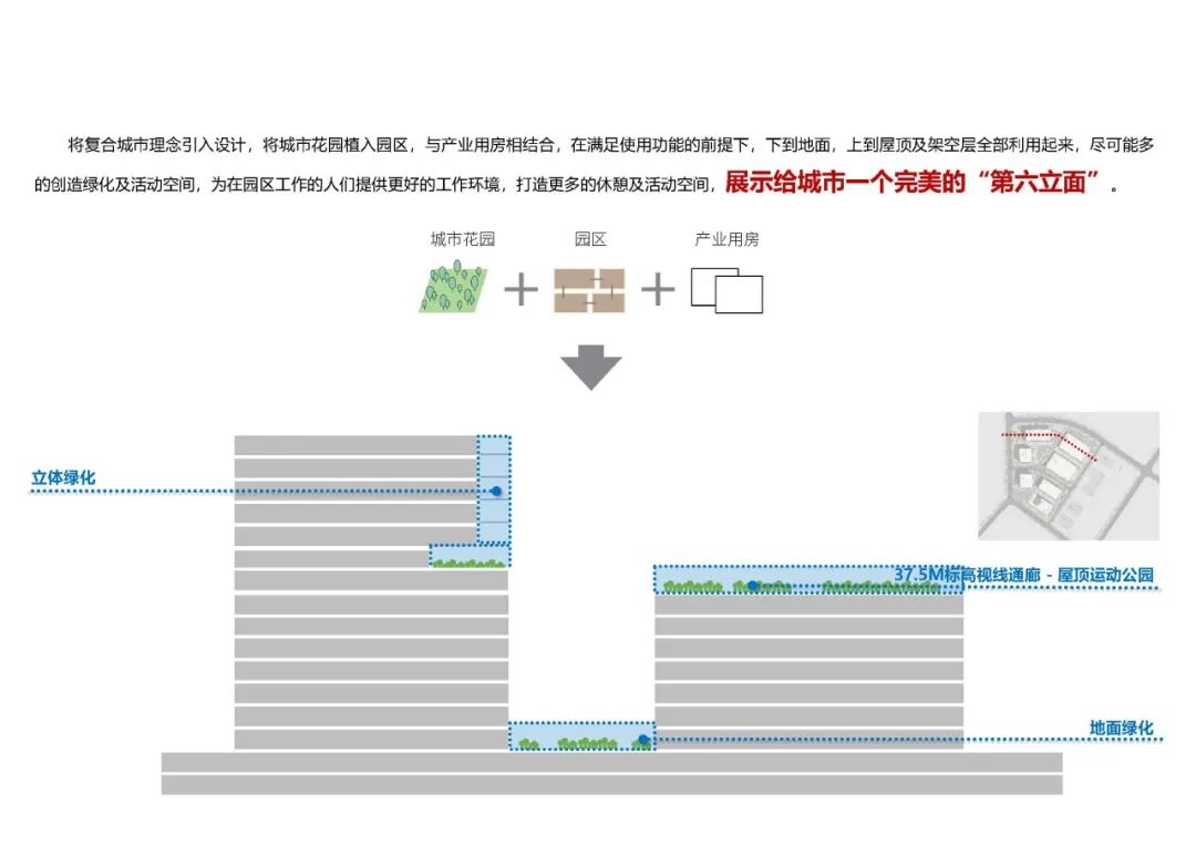 从文化创意角度出发,项目在建筑凹槽部位结合灯光点缀高饱和度色彩,不同颜色对应不同功能的楼栋,在赋予建筑活力的同时增加标识度:如3栋、4栋高端制造厂房点缀智慧蓝,象征高端制造、智能制造;1栋、6栋复合型厂房点缀生态绿,象征生态园区、低碳园区;2栋、5栋研发厂房点缀活力橙,象征积极向上、健康活力。