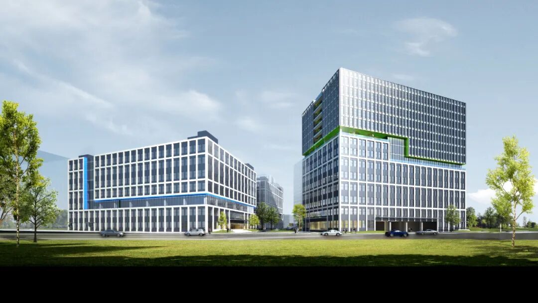 建设内容包含2层地下室、2栋办公楼、4栋厂房和配套宿舍。项目建设用地面积为5.2万平方米,总建筑面积为32.34万平方米,其中地上25.12万平方米,地下7.22万平方米。预计2025年1月竣工并交付使用。