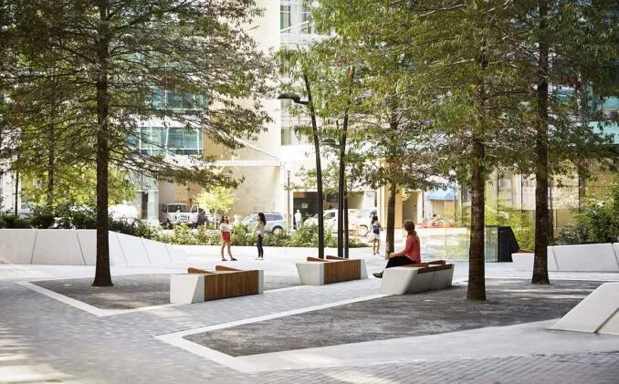 SCAPE发布了华盛顿特区新落成的中城中心广场的照片。中城中心广场是卡尔地产中城综合体项目的一部分,它启动了华盛顿特区市中心的城市结构,引入了15,000平方英尺的公共广场。