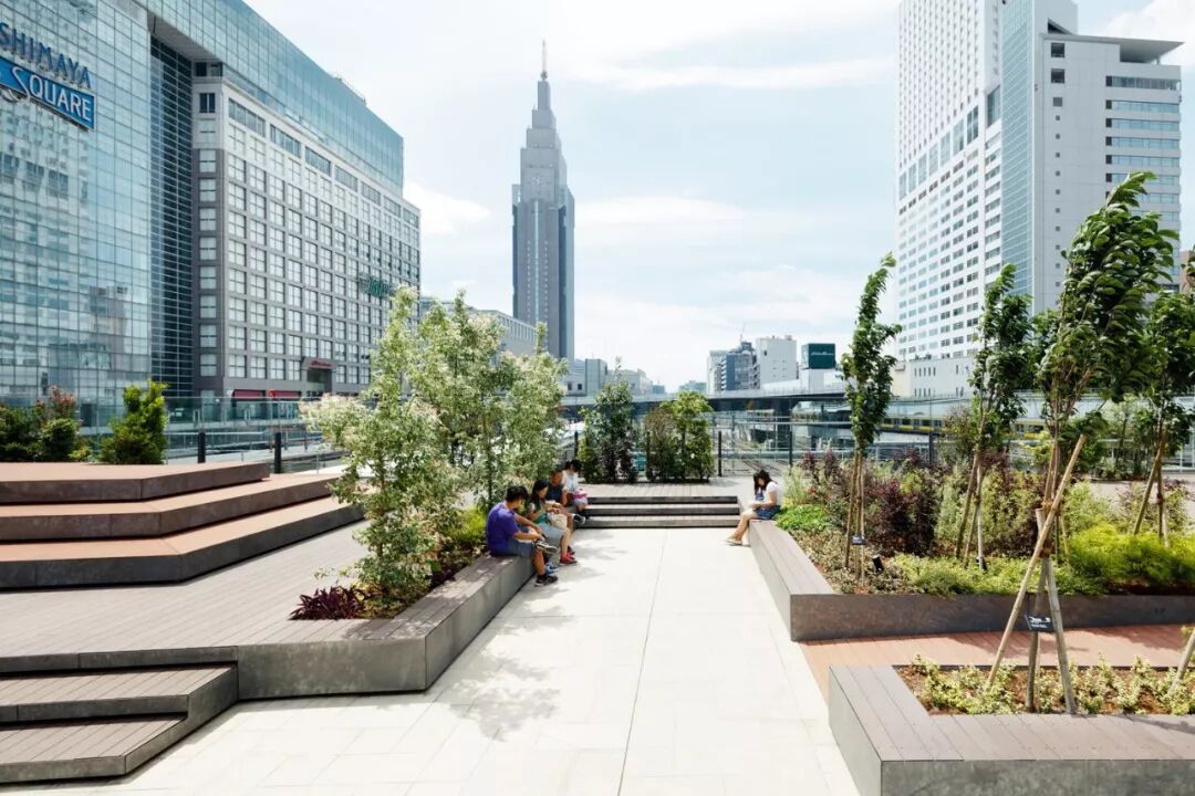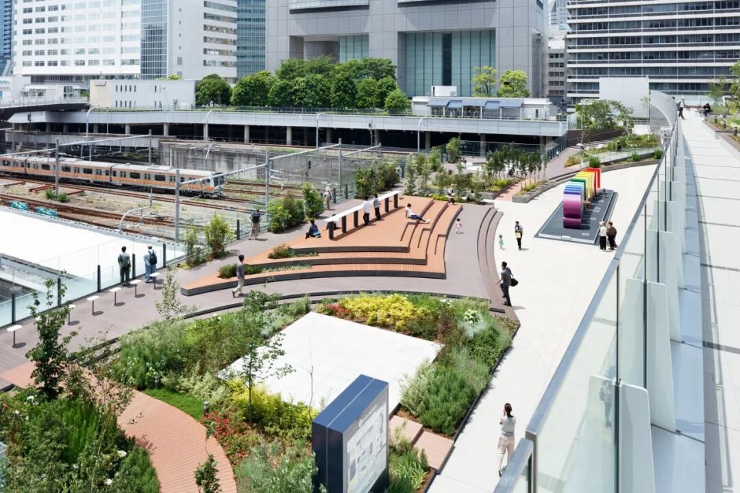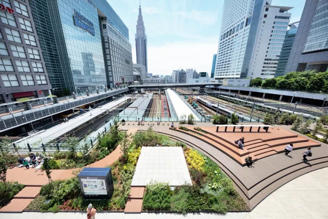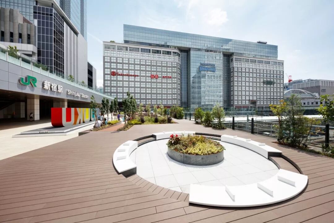 散布在铁路轨道上的约2800米的JR新宿站步行街景观设计。