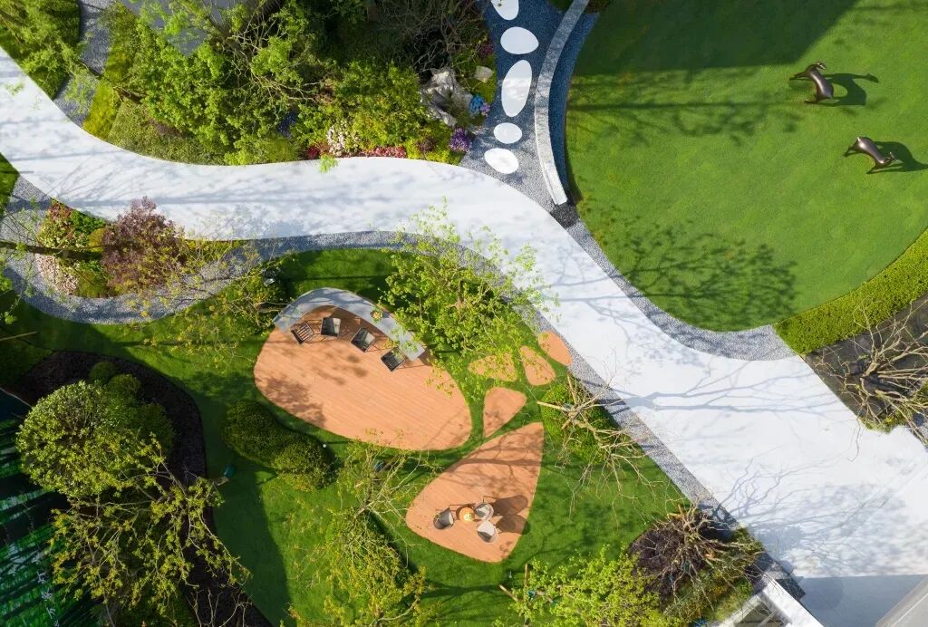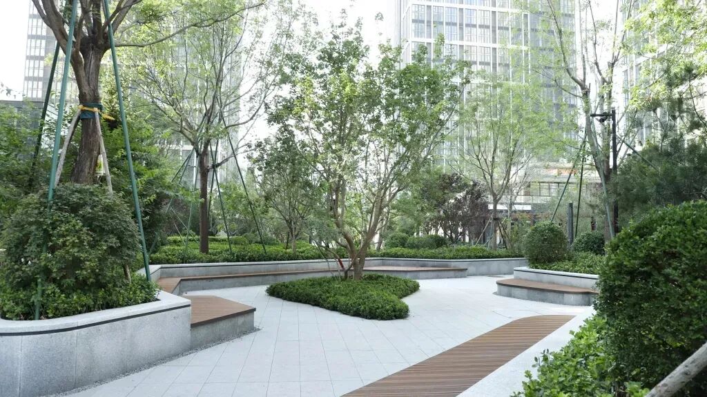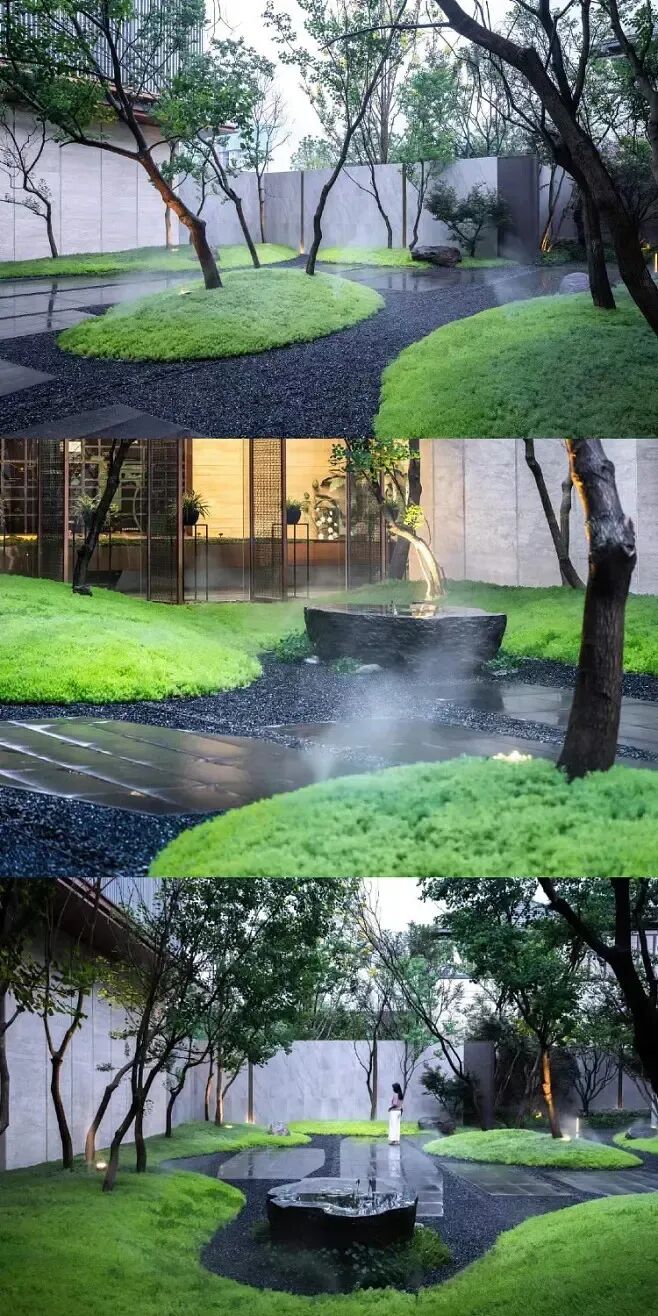 紫薇夹道的林下空间,层次递进,丰富空间。 从前场的安静沉稳走向后场的温暖热烈,生活本该如此归心。