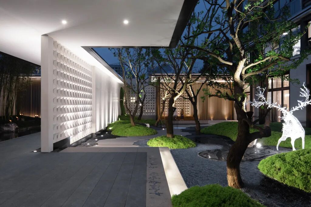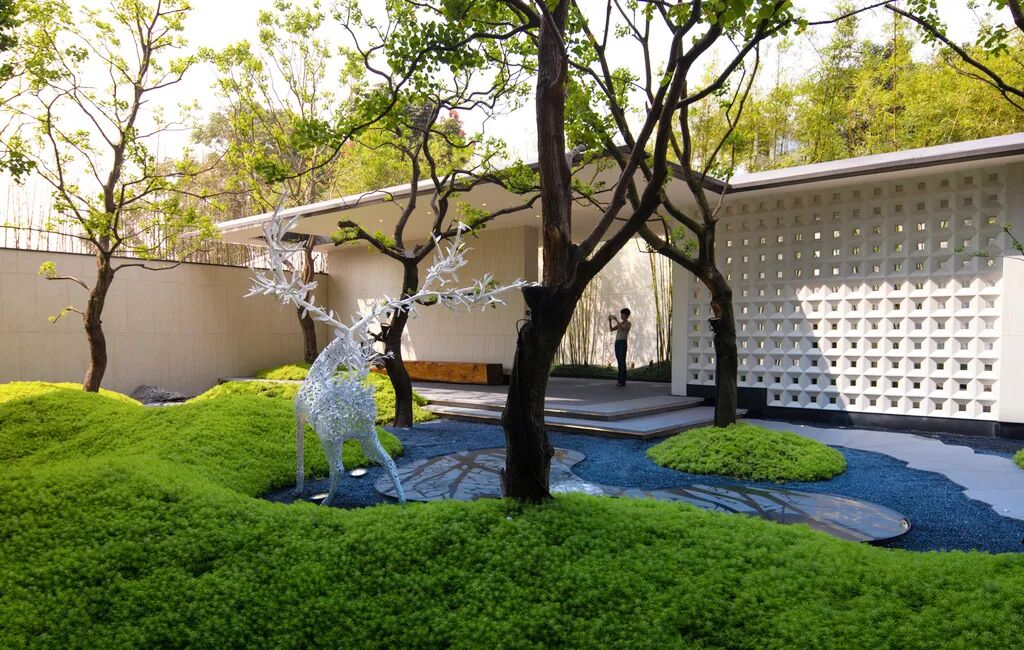 树之姿,草之形,影之趣,墙之景相交融,营造不同层次的观感,邀客而来林下座,设茗赏花开,阶前花下,悠然自得,回归生活本真模样。