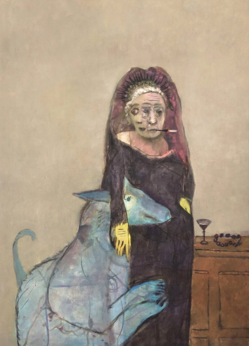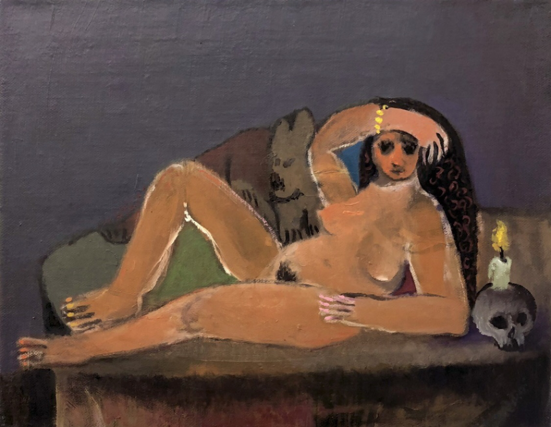 Nude with dog and skull 2019