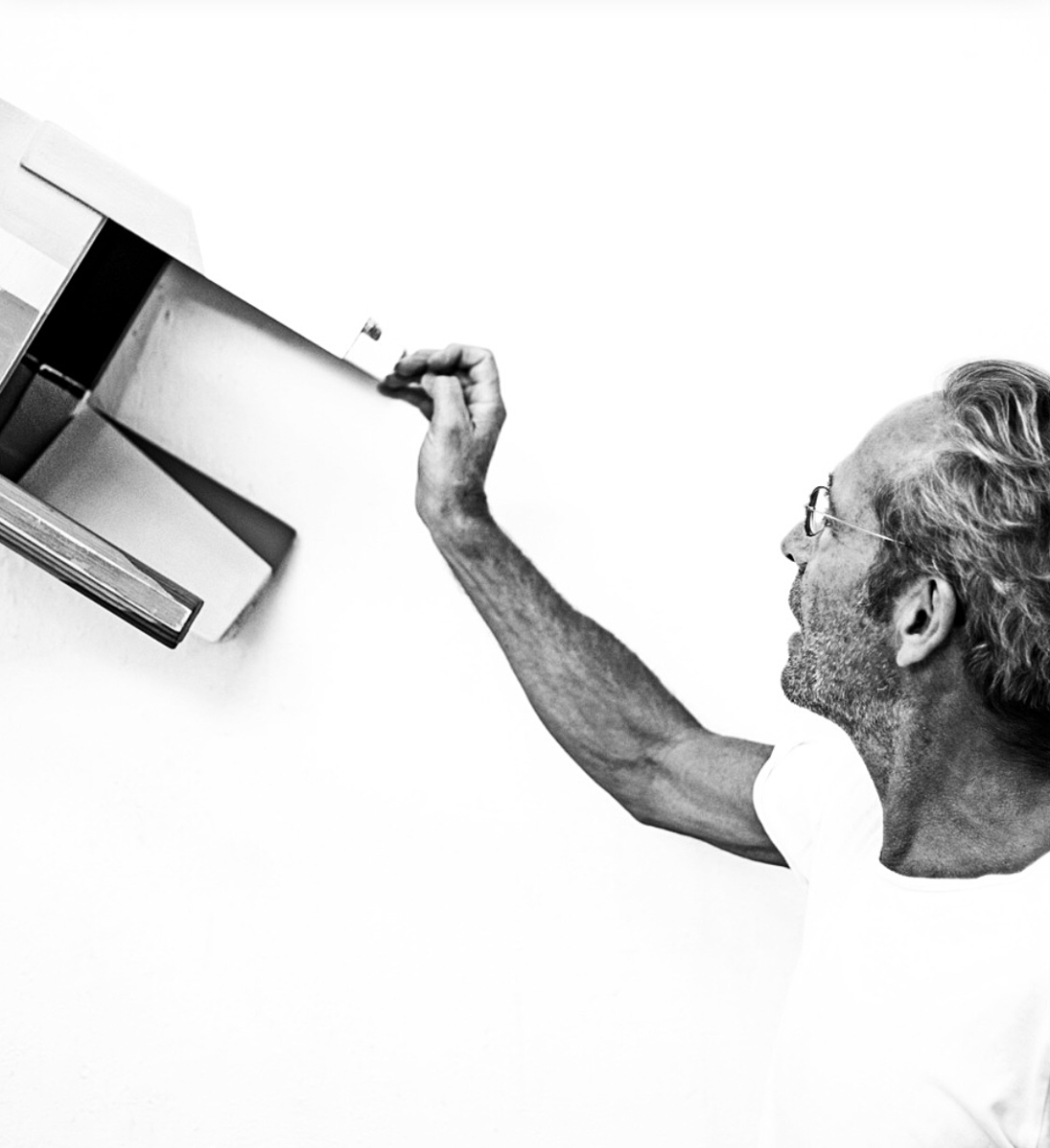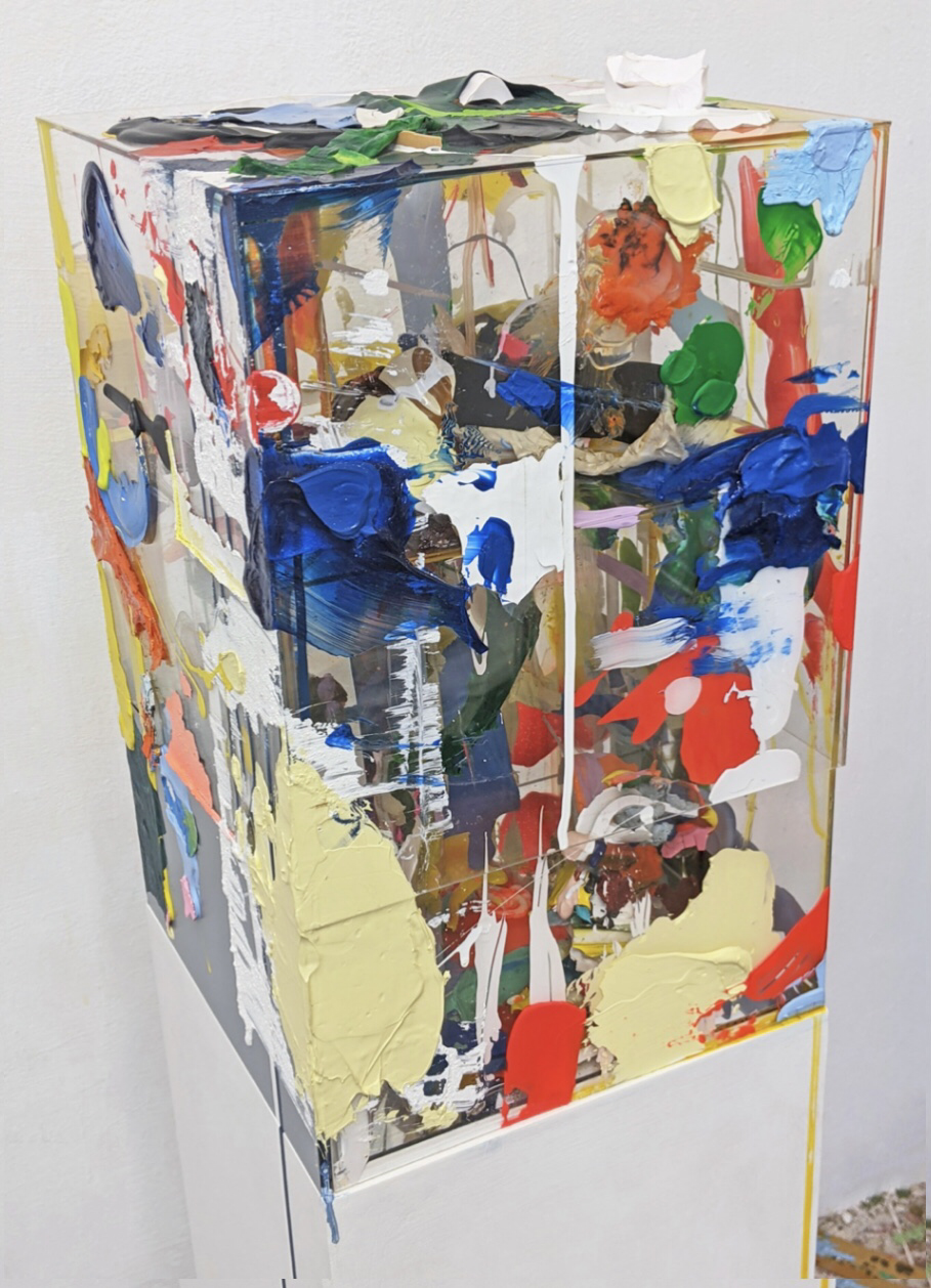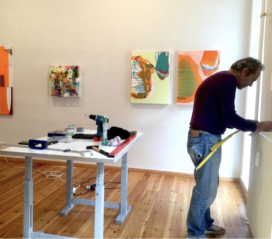 His main artistic work is dedicated to abstract painting, with color and its materiality in the foreground. He examines their development on the basis, form and body, as physical force and in their objectness. His works are based on a dialogic/dialectical form; Reciprocal, opposite things are evoked and determined: in front of/behind; old New; positive/negative; dull/shiny. The surface becomes the topography. His works are sometimes interpreted as depiction-abstract (but at the same time material-concrete) narration.
