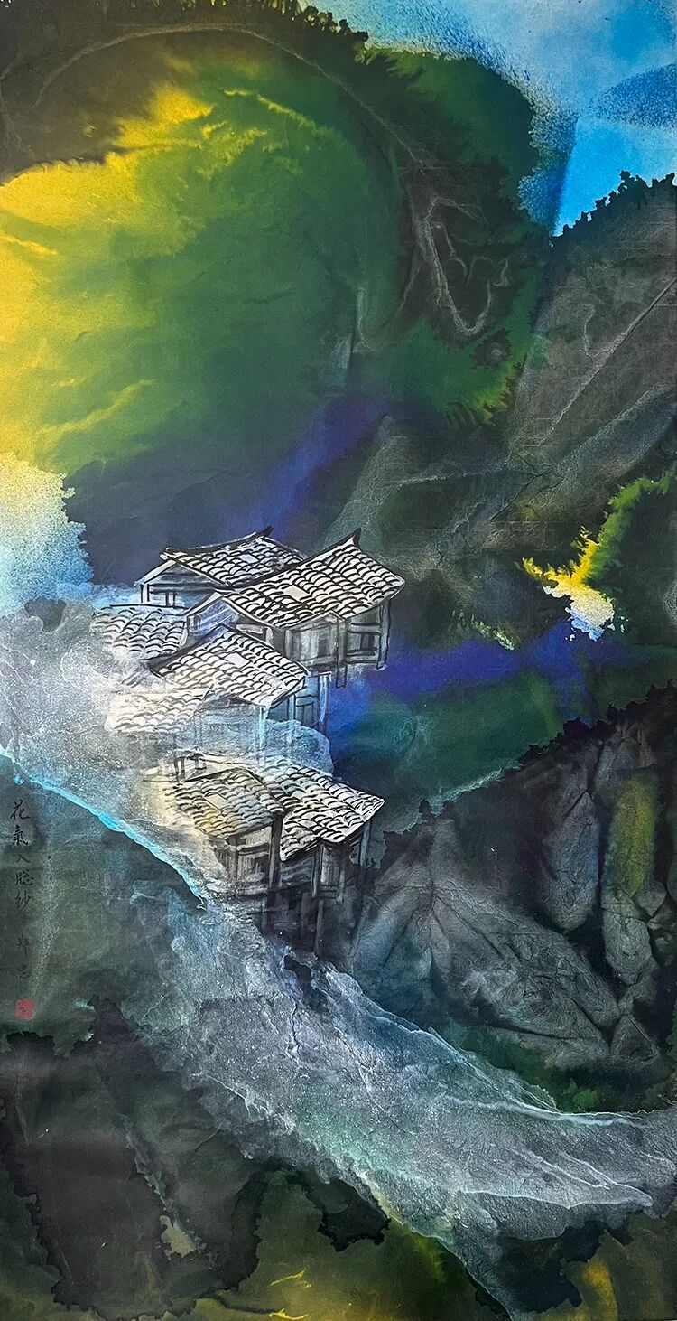 当代中国画艺术正是如此在语言上实际上是一种“总体艺术”的概念,即将各种语言手段集成在一件作品中。同样潜水员生涯独特的生命体验、美院系统的学习与训练、设计师生涯对色彩的感觉、工程师染整的理念、发明家的天纵之才、版画家的观念、美院任教,教学相长……诸般经历证实了行者郑忠推断性的探索。