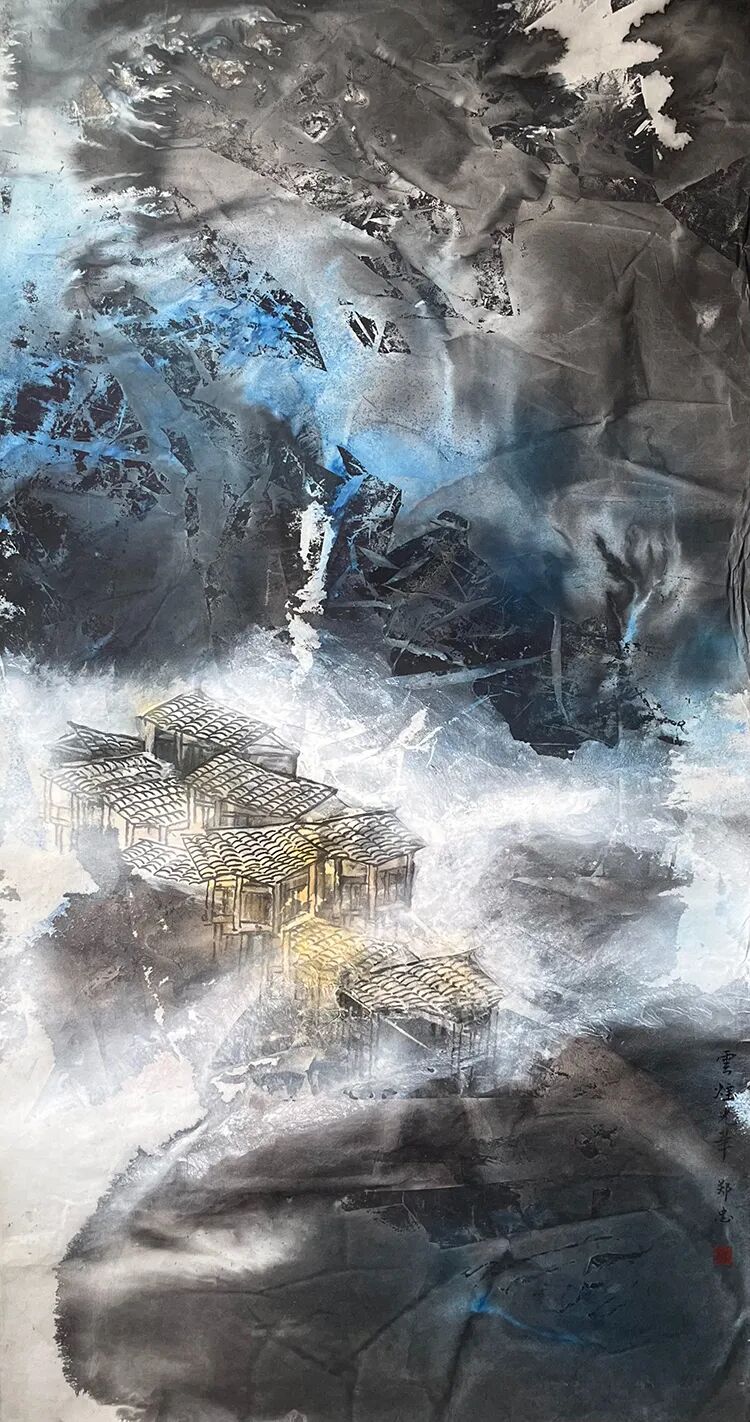 水墨画从《谷音系列》《海韵系列》《云梦沧海系列》《粹玉系列》直至今天的“郑忠式的山水画”他总是忽焉在前,格物而后,别出心裁,行于所当行,所止于不可不止。