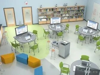 从微观层面来看,新型教学空间为适应从教师为中心到以学生为中心的变化而存在,其布局势必打破传统教室中讲台——座位的单一中心空间模式,如于20世纪80年代在美国提出,近年逐渐在我国推行的STEM教室,为了支持项目式学习的方式(PBL, project-based learning),教室通常会被划分为互动教学区、工具区、实验区、展示区等等,配备以可灵活移动、组合的模块化家具,这类教室已逐渐成为新型校园中的标准配置。